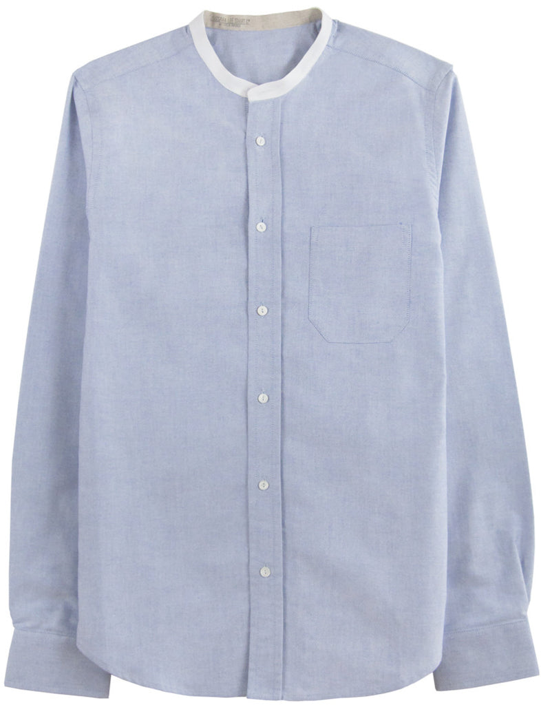 Pinpoint belongs to the Oxford family of fabrics but it has a softer, lighter weight texture and appearance. Our white baby band collared shirt is designed to be worn collarless for a comfortable feel or with a detachable collar for a formal look. In this instance we recommend the shirt to be buttoned up and worn with a tie.